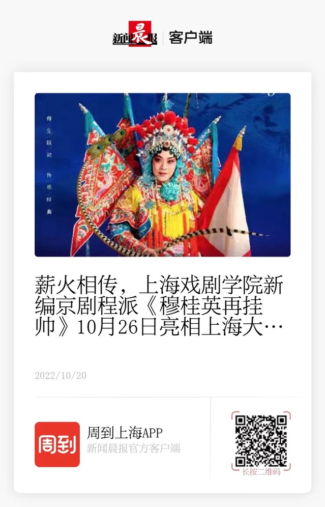 薪火相传,开云足球首页官网下载新编京剧程派《穆桂英再挂帅》10月26日亮相上海大剧院