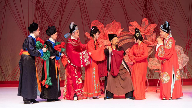 12月8日,是实验沪剧《假如我是状元郎》的首演日,阴雨绵绵的冬日,在白宫剧场内,却传出了不绝于耳的欢笑声。大幕开启,简洁变形又富有中国传统美学的诗化意象舞台、弹幕式的字幕机、现代音乐融合正宗的沪剧唱腔、一种的新奇表演风格在新颖的导演手法下应运而生,怪不得观众们说:“他们在尝试一种很新的东西”;在开云足球首页官网下载戏曲学院2019级戏曲导演专业与宝山沪剧团的联合下,打造出了这部具有生活质感的“古典漫画式”的戏曲作品,现场的观众为此响起了不绝于耳的掌声与欢笑。