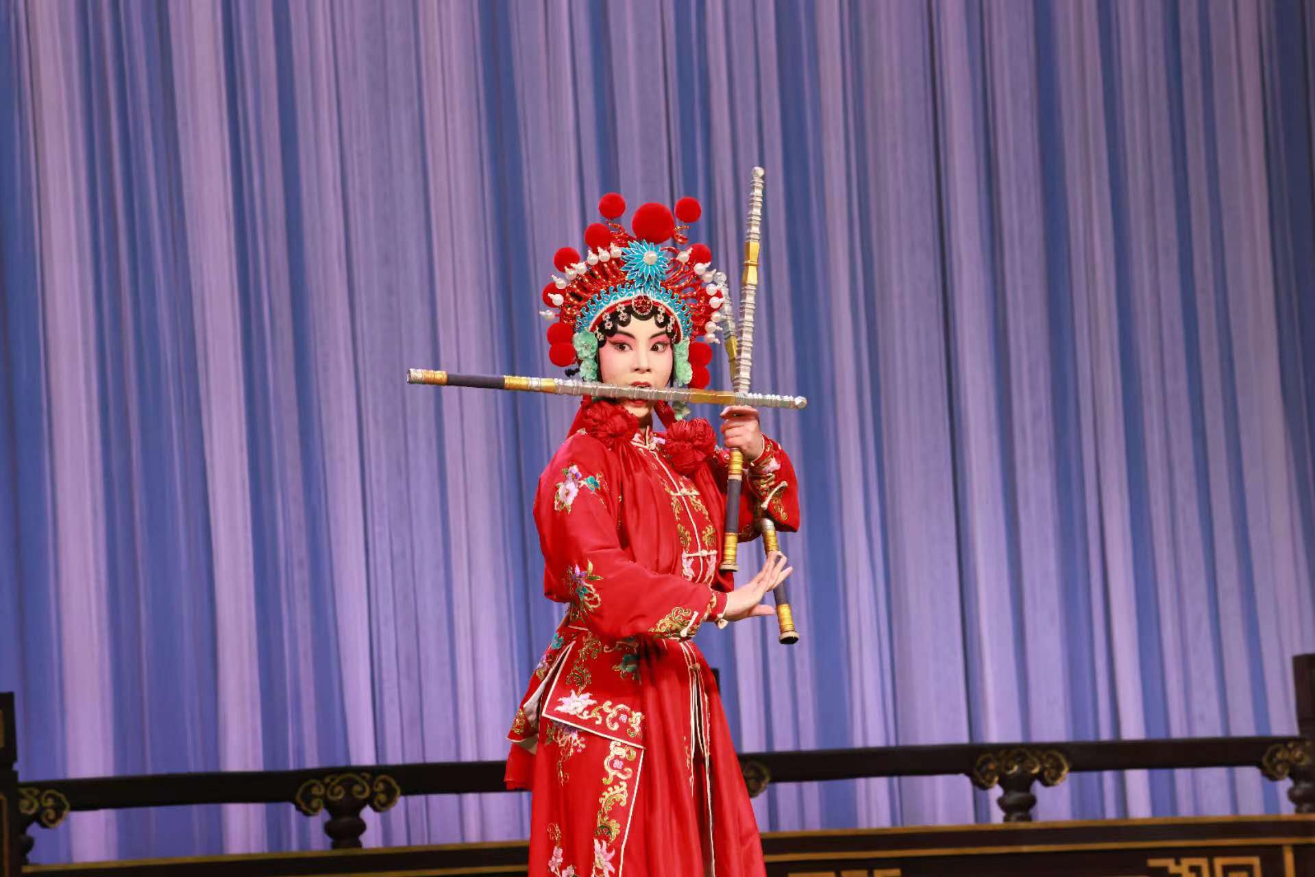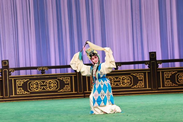 当晚的展演打头阵的是由湖北艺术职业学院带来的器乐演奏节目楚剧《三打金枝》,陕西艺术职业学院带来的戏曲打击乐秦腔《结底》接续上演,这部作品选自传统打击乐套曲“暴落锤”中的华彩部分,呈现出火爆炽烈的气氛,在现场迅速掀起高潮。演出中,京剧《通天犀》《对花枪》《竹林记》《八大锤》、川剧《思凡》《归舟》《六月雪》轮番上演,虽然演员大多是“00后”,但戏码唱腔丰富、行当齐全,技巧绝活层出不穷,引来观众阵阵掌声。压轴戏是由湖北艺术职业学院选送的汉剧《泗州城》,这出根据水漫泗洲历史事实与神话传说改编的经典剧目,曾于4月亮相第四届“梨花杯”全国青少年戏曲教育教学成果展示活动北京首演时赢得满堂彩,此次在家门口亮相同样受到观众肯定。