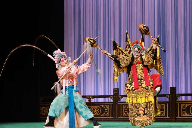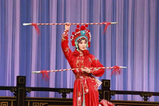 戏曲打击乐秦腔《结底》接续上演。它选自传统打击乐套曲“暴落锤”中的华彩部分,由陕西艺术职业学院演出,现场呈现出火爆炽烈的气氛,迅速掀起高潮。一场京剧和川剧的荟萃紧随其后,京剧《通天犀》《对花枪》《竹林记》《八大锤》、川剧《思凡》《归舟》《六月雪》,你方唱罢我登台。京剧作为国粹,唱腔丰富、行当齐全,受到了大家的热烈追捧;川剧则表演细腻精致、演唱声腔丰富、技巧绝活层出不穷,具有鲜明的表演特点。