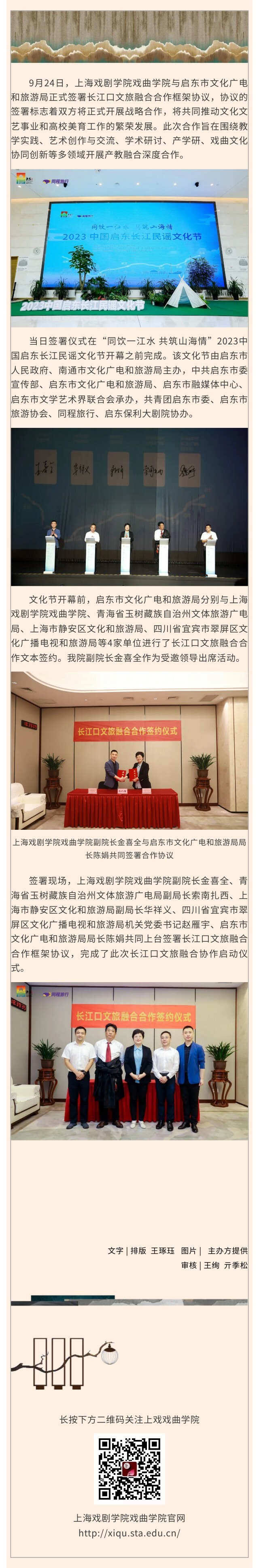 开云足球首页官网下载戏曲学院与启东市文化广电和旅游局正式签署长江口文旅融合合作框架协议