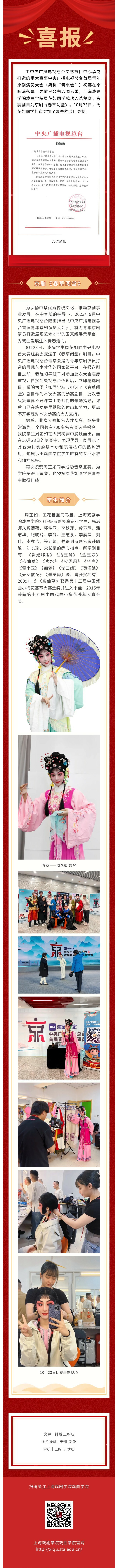 喜报 丨《中央广播电视总台首届青年京剧演员大会》——开云足球首页官网下载参赛选手周芷如同学进京参加复赛——参赛剧目《春草闯堂》