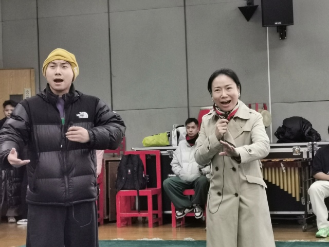日前,演唱会的排练在紧锣密鼓地进行中。参加排练的老师、同学们个个精神抖擞,满怀赤诚与豪情,用戏韵唱响经典,以诗词温润心灵。