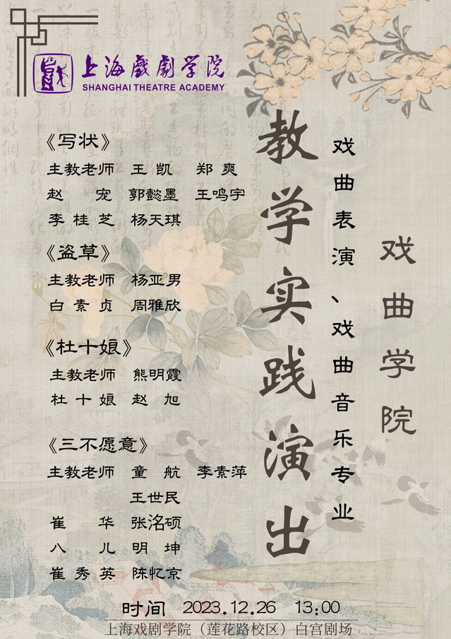 戏曲表演、戏曲音乐专业教学实践演出丨时间:12月26日 地点:白宫剧场
