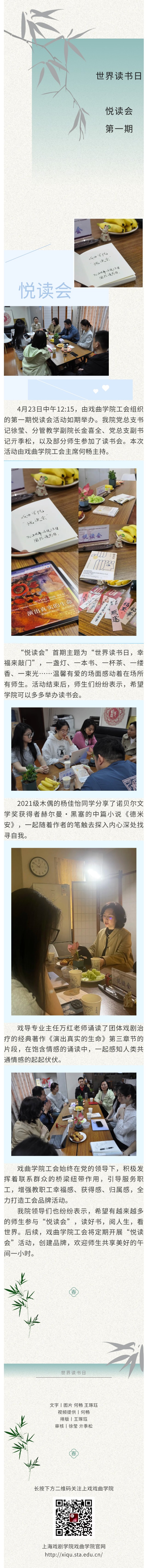 世界读书日,幸福来敲门——“邀您分享一本书”系列读书活动暨戏曲学院工会“悦读会”正式成立