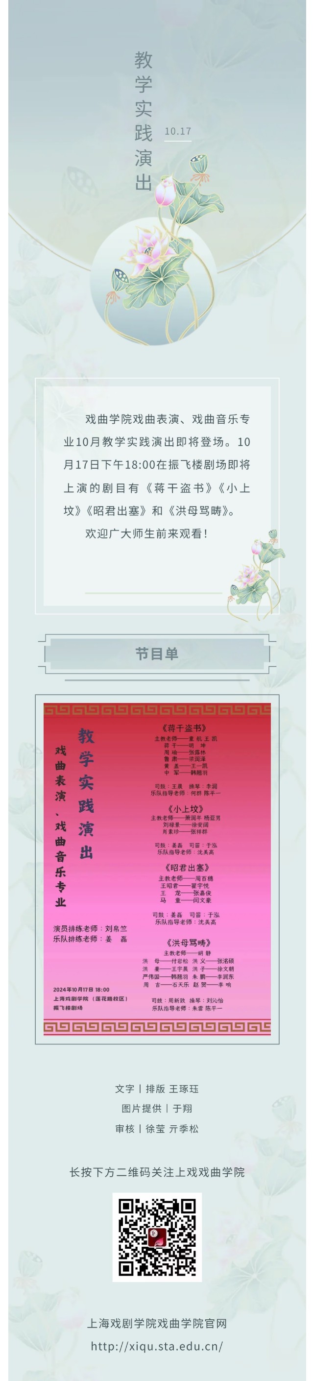 戏曲学院戏曲表演、戏曲音乐专业10月教学实践演出即将登场