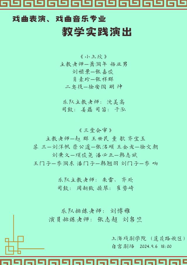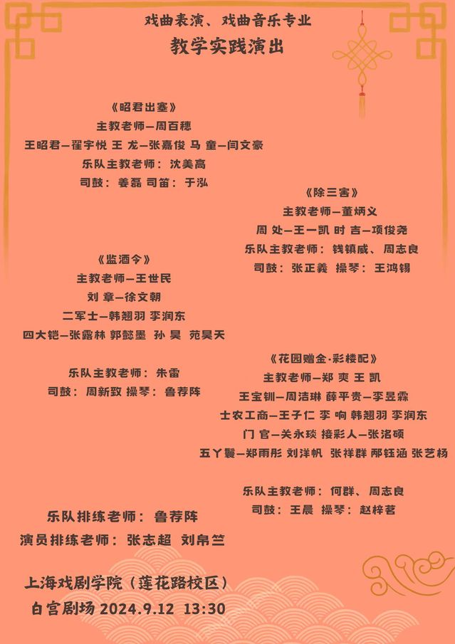 戏曲学院戏曲表演、戏曲音乐专业9月教学实践演出