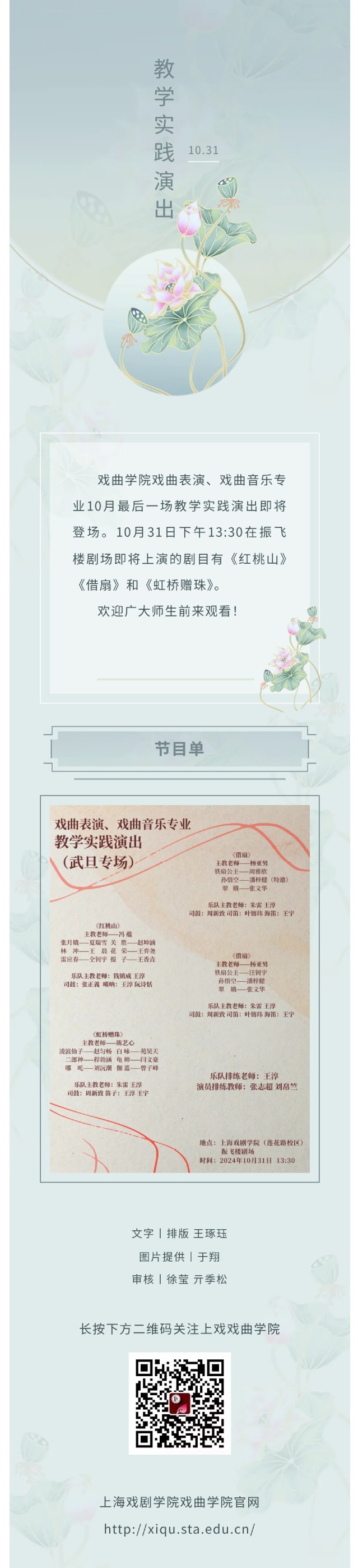 戏曲学院戏曲表演、戏曲音乐专业10月最后一场教学实践演出即将登场