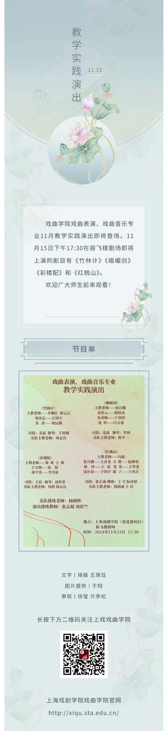 戏曲学院戏曲表演、戏曲音乐专业11月教学实践演出即将登场