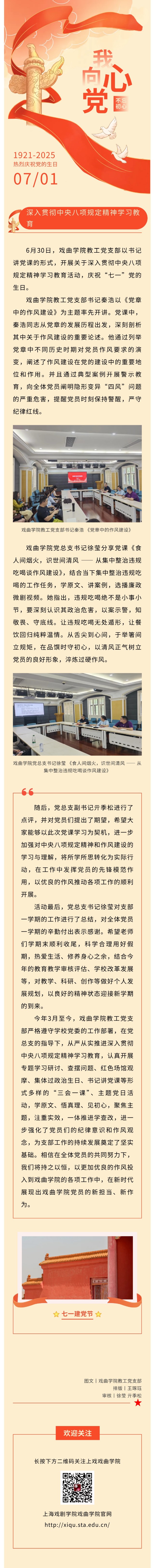七一薪火传,铁律映初心 —— 记深入贯彻中央八项规定精神学习教育书记讲党课活动​