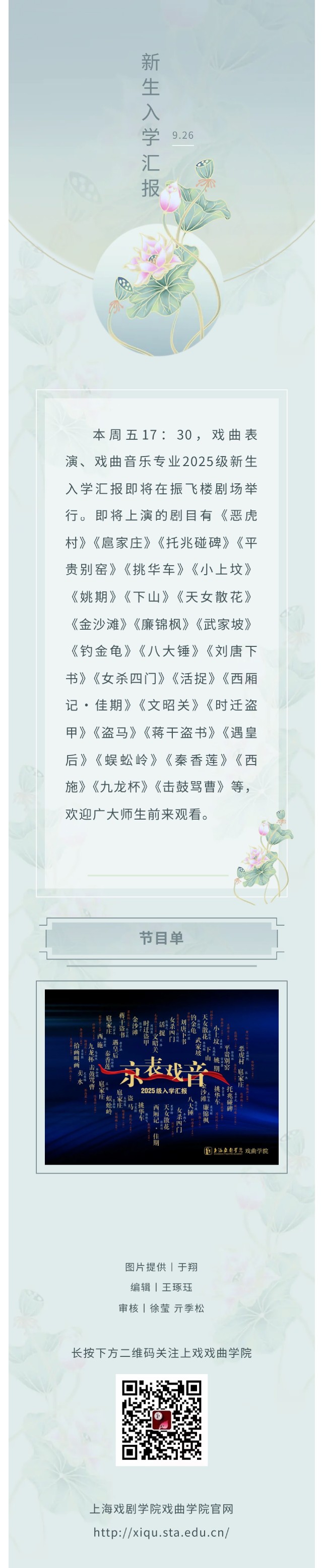 演出预告丨戏曲表演专业、戏曲音乐专业2025级新生入学汇报即将上演