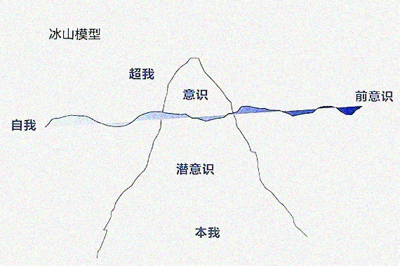弗洛伊德的冰山理论是把心灵比喻为一座冰山,浮出水面的是少部分,代表意识,而埋藏在水面之下的大部份,则是潜意识。他认为人的言行举止,只有少部分是意识在控制的,其他大部分都是由潜意识所主宰,而且是主动地运作,人却没有觉察到。