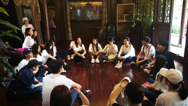 参观后,大家围坐在艺术馆内交流从秦怡身上得到的感悟以及未来要行进的方向。