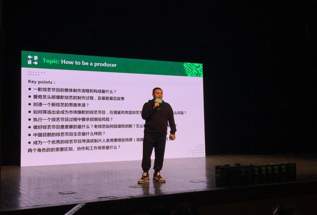 谈到真人秀节目时,车澈师哥指出,“真人秀就是创造一个情景,选择人物,然人物自然地和情景发生冲突,这里面会有动作和反动作,所以真人秀是剧本后行的,不同于戏剧,戏剧是剧本先行,老师会让我们去虚拟情景,编写人物小传,回课的时候看人物在情景中的动作是不是合理的,然而真人秀所有的动作都是合理的,因为是真人,我们只需要把有戏剧性格的,能产生冲突的真人,放在极端的情景里,通过后期的剪辑,强化动作和反动作就可以,所有真人秀的剧本不是写出来的,是剪出来的。”这样简单而深刻的解释,让戏剧学院的同学从戏剧的角度了解真人秀。同时他也谈到,真人秀的环境太难了,希望现场的同学们能给他创新的灵感。