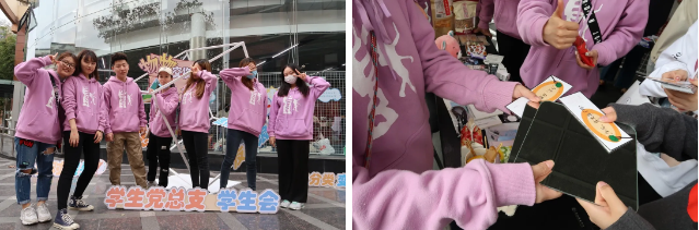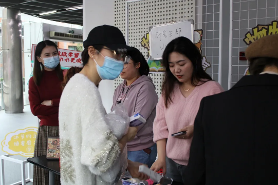 戏曲学院的小伙伴们,一齐身着STA卫衣,在集市中成了一道吸引眼球的风景线。他们不仅带来很多生活小物、零食等物件,还化身顾客代表,带着同学的兑换券扫空兑换处的小礼品,这就是传说中的“大户人家”了吧。