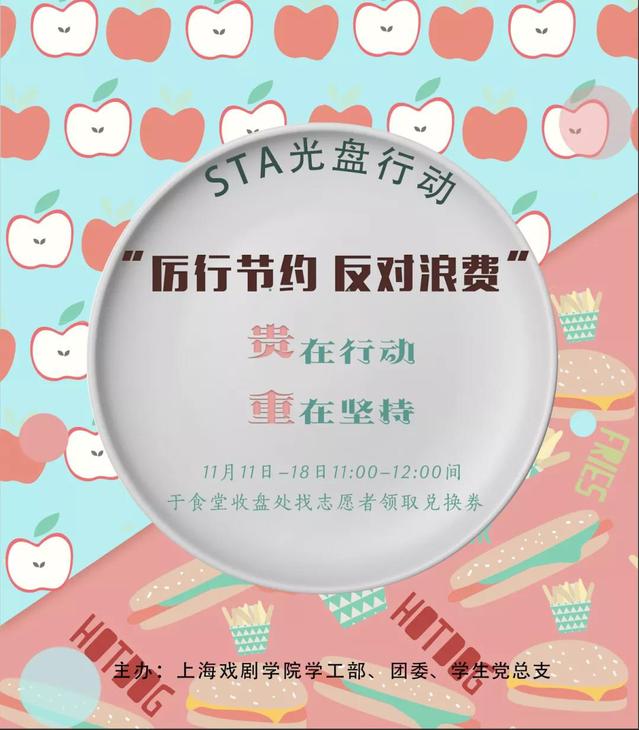 活动期间,11:00-12:00在食堂就餐完毕后,可端光盘前往各层的收盘处,在志愿者处进行打卡认证,领取兑换券。
