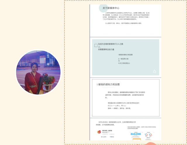 新媒体的运营工作可不止推文这一个方面哦,与各专业同学们合作交流也是必不可少的!19级艺术管理的依帕热同学就是从这一方面入手,讲述了自己在甲乙双方之间的工作技巧,把“沟通的魅力”浓缩进了诙谐的经验分享当中。