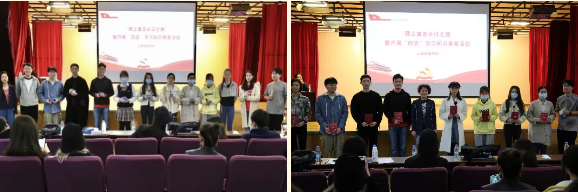 舞美系学生党支部书记李宗禹老师和张译月老师主持并开展了“网上重走长征路”暨“四史”学习知识竞答活动,并决出了团体一二三等奖和前十名同学。在本次活动中,竞答内容围绕着大主题“网上重走长征路”展开,分为“英雄”、“复兴”、“创新”、“信念”四个篇章。在竞答过程中,同学们积极参与,气氛热烈,充分感受到了英雄模范的先讲事迹和崇高精神,了解到了新中国成立以来的沧桑巨变和奋斗历程,体会到改革开放以来中国伟大创新的宝贵经验,探索到了马克思主义和社会运动跌宕起伏的发展历程。引导高校师生通过学、赛、讲、展等活动形式,充分运用线上线下有机结合的方式,切实引导广大师生深刻理解中国共产党为什么“能”、马克思主义为什么“行”、中国特色社会主义为什么“好”。在本次活动中,虹口区教育学院实验中学的全书记和楼主任全程参与,全程陪同,和党训班的师生们一同追溯上戏过往的光辉历史。