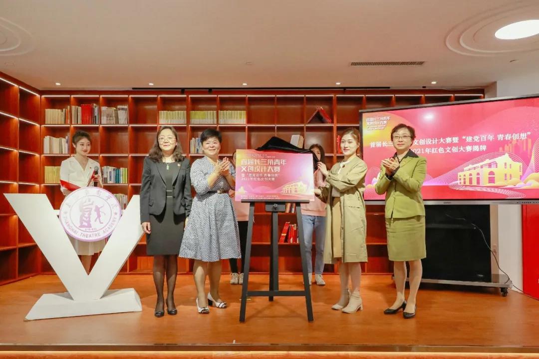 张佳春总会计师与此次文创大赛的主办方领导姚栋华、郑薇、陈颖婕,为首届长三角青年文创设计大赛暨“建党百年 青春创想”2021年红色文创大赛揭牌。