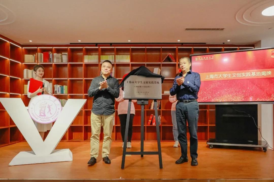 随后,上海戏剧学院张伟令副院长与上海市学生事务中心副主任王涛为我校上海市大学生文创实践基地揭牌。