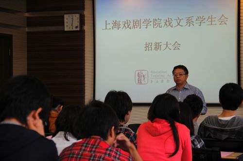 2012年10月15日中午12点,戏文系第六届学生会在红楼209教室举行了招新大会。本次招新大会由系学生会主席陈一诺主持,主席团成员付子萱、薄红林以及各部门部长都积极参加了此次招新。系党支部书记沈亮老师、系辅导员刘颖老师的加入使得戏文系招新大会更具规模。