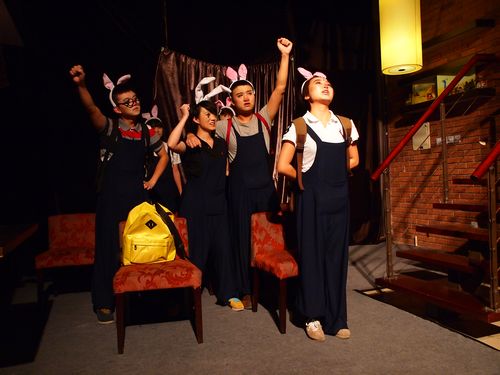 一开始,我们的导演和编剧包括我都觉得,这部戏是一部不太适合小孩子们看的戏,因为他的表现和主题可能都有些黑色。但事实上,这部戏我们也让咖啡馆里的小孩子们都看了,小孩子们的家长也有些来看过。看过之后,这些小孩子们都会告诉我们说:我们不要变兔子。