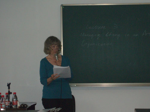 第二天和第三天的讲座,Sue Storr同样给戏文系的同学准备了精彩纷呈的内容,同学们都在讲座结束后争相提问。在Lecture3中,Sue谈了艺术组织的管理和变化,她说道:“当我第一次来上戏的时候,是在1998年。我从外交人士那儿了解到了上海戏剧学院。现在每个国家都能很容易地知道上戏正在做的事,并反映了中国将把重点放在戏剧和电影商,这是很大的变化。”