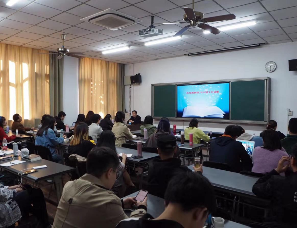 2019年11月14日下午,我系主办的《人文传承与治学方法》系列讲座在红楼202教室展开第四场。本次讲座由戏文系党支部书记张璟老师主持,并有幸邀请到上海戏剧学院原研究生部主任、原戏文系主任丁罗男教授,为同学们讲述《“后戏剧剧场”与中国文化语境》。