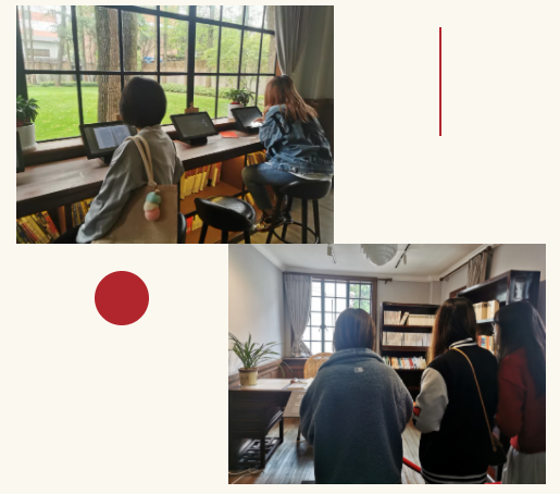 二楼主要是夏衍先生的卧室及书房的复原摆设,以及一些革命经历的展示。认真参阅了夏衍先生的资料后,同学们对于其红色革命的经历有了更深的认识。看着夏衍先生的卧室和书房,大家纷纷展开联想:在这里曾经发生过什么故事?夏先生是如何在这里创作出许许多多优秀的作品?这让夏先生在同学们心中变得真实鲜活了起来。