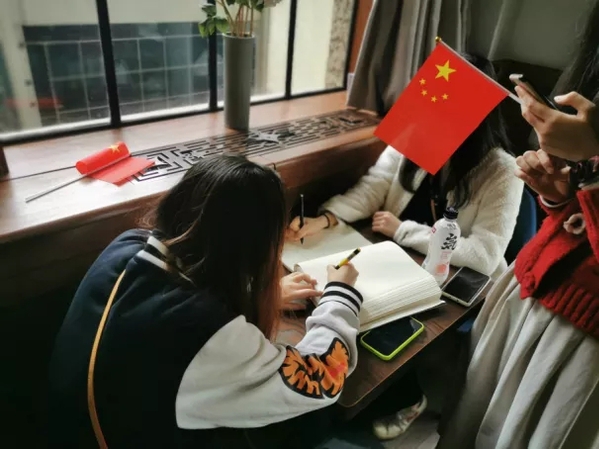 进入夏衍旧居前,同学们自觉遵守防疫规定,带好口罩、准备好健康码,在工作人员的指导下测量体温、登记预约。