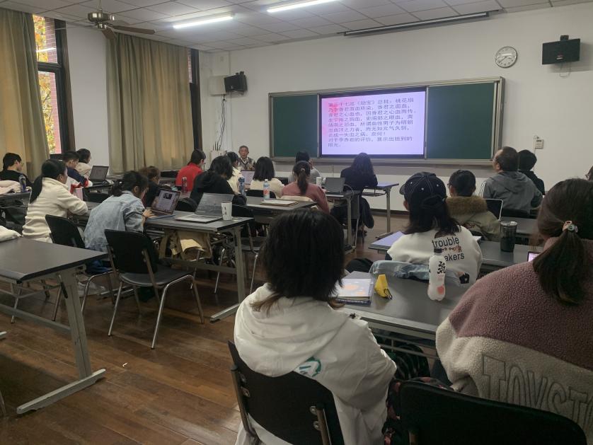 在赵山林教授的讲解下,同学们对明末清初中国戏剧学的内容和存在形态有了更深入的了解。赵教授还针对同学提出的问题进行交流,课堂气氛活跃。