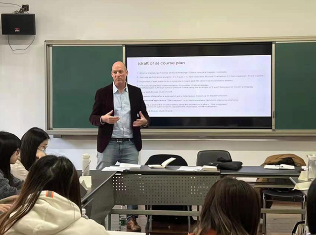 2021年11月8日,戏剧学专业外引课程《戏剧构作》开课了。该门课由德国戏剧学家Thomas Willems主讲、19级戏剧学专业班主任魏梅老师担任助教,分九周向同学们介绍戏剧构作的概念内涵、发展历史、中国接受、工作方法等,并通过具体案例的分析、相关任务的安排让同学们学以致用,帮助他们增进对该职业的了解。