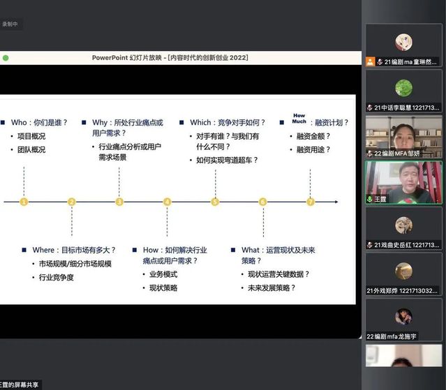 2022年11月10日下午,“迎挑战 博双创”系列活动——“文化创意与创新创业”讲座在腾讯会议线上举行。本次讲座邀请到骑鲸客文化投资董事长、上海戏剧学院创业导师王霆老师,为戏文学子们进行有关创新创业的思路梳理和经验分享。