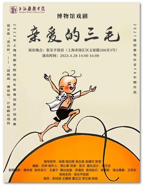 二是通过戏剧实践大力弘扬革命文化,筑牢红色信仰。习近平总书记对文化遗产保护高度重视,多次强调“文物活化利用”。戏文系党总支通过“活力杯”—“迎挑战 博双创”计划积极孵化博物馆戏剧,戏文系春生思政剧场推出《亲爱的三毛》(张乐平故居)《一九一六》(蔡元培故居)等红色博物馆戏剧,助力文博活化、传播革命文化。“文博剧场”项目获得第八届中国国际“互联网+”大学生创新创业大赛国赛铜奖、上海赛区金奖。