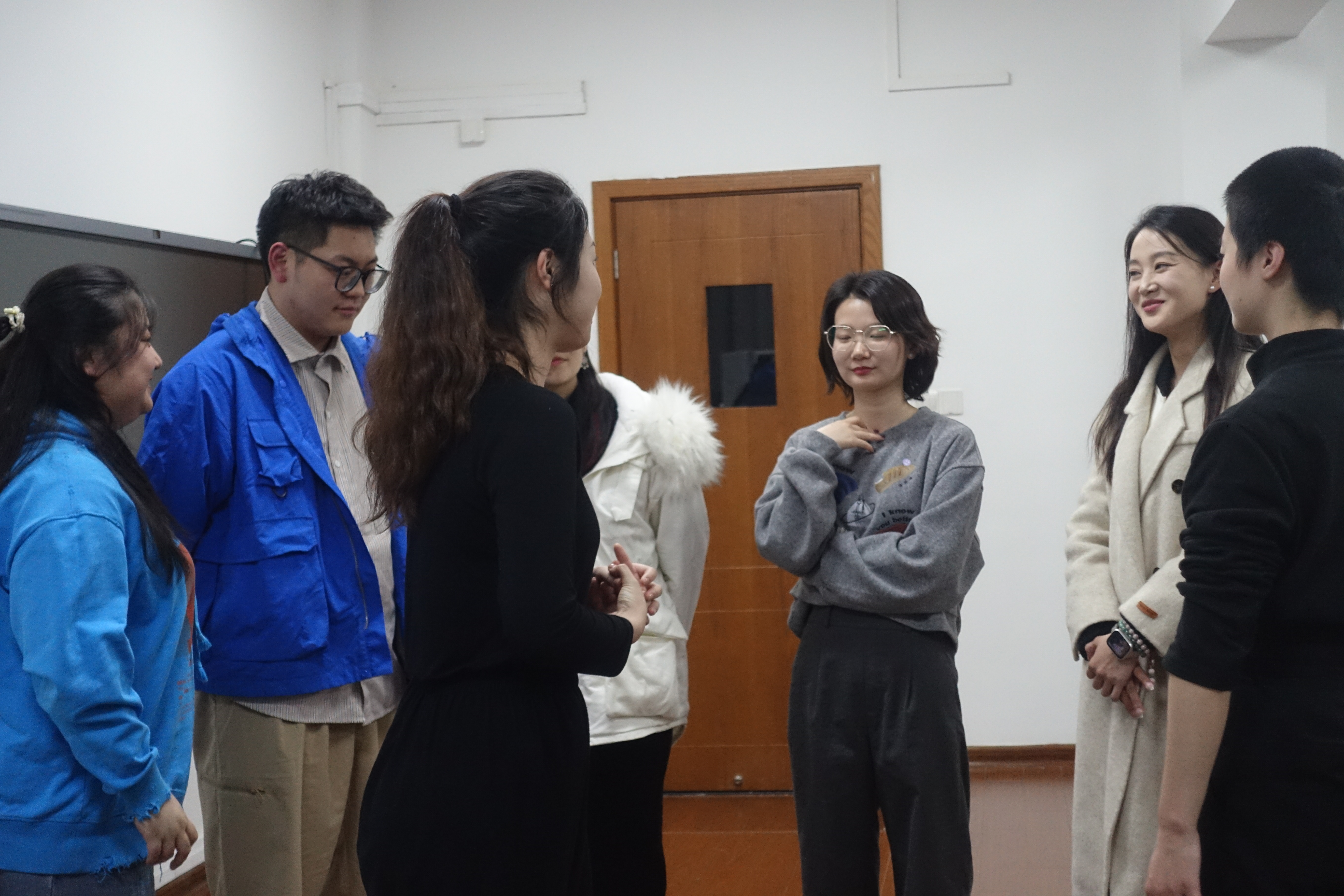 工作坊正式开始之前,领航员、2021级社会表演学研究生田露用亲切的语言与笑容,带领参与者们做简单的热身游戏。原本还不太熟悉的同学们迅速打成一片,现场充满了欢声笑语。
