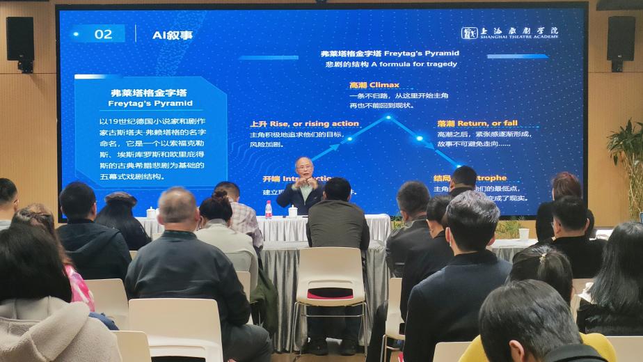 4月9日,由戏剧文学系党总支主办的“戏文讲堂”邀请到了上海戏剧学院中国编剧学教师团队的姚扣根教授,带来一场题为“未来已来:人机合作编剧随想”的讲座。姚教授以广博的见识和深刻的见解,为我们揭示了人工智能在编剧领域的突破性应用,以及未来文艺创作新模式的无限可能。戏剧文学系主任、党总支副书记陈军教授主持本次讲座,戏文师生积极参与。