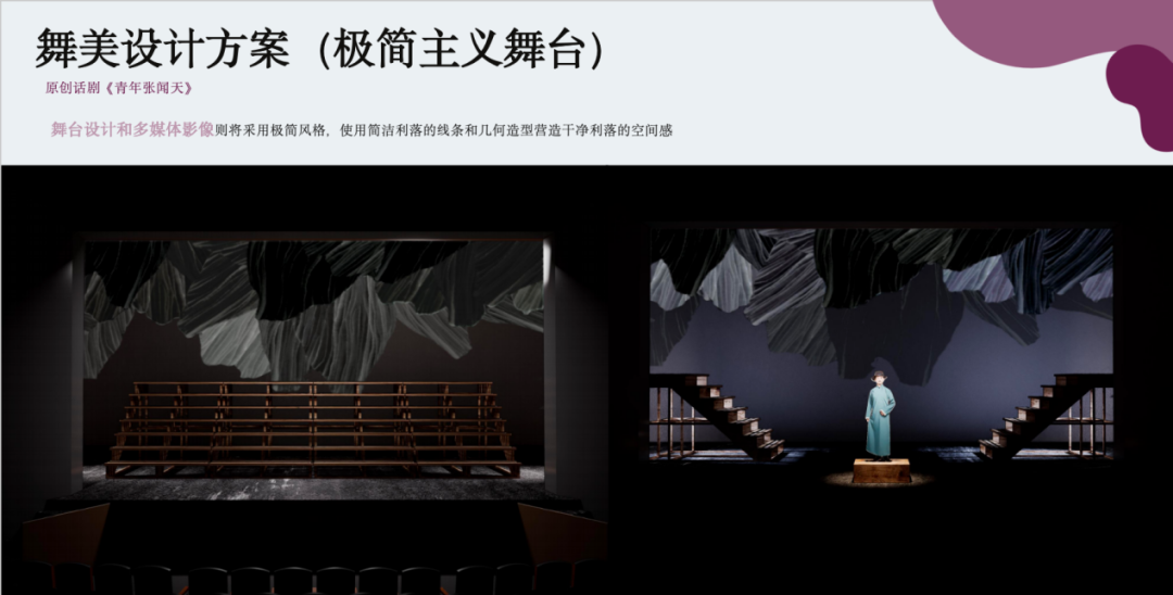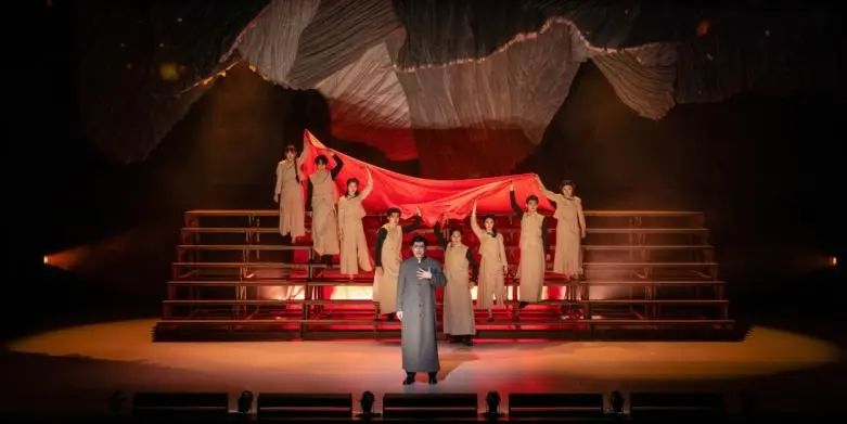 追求时尚感,探索当代红色美学,服装设计适度融入现代前卫元素,灵活运用灯光表意传神,注重新中式与极简主义舞台的融合。