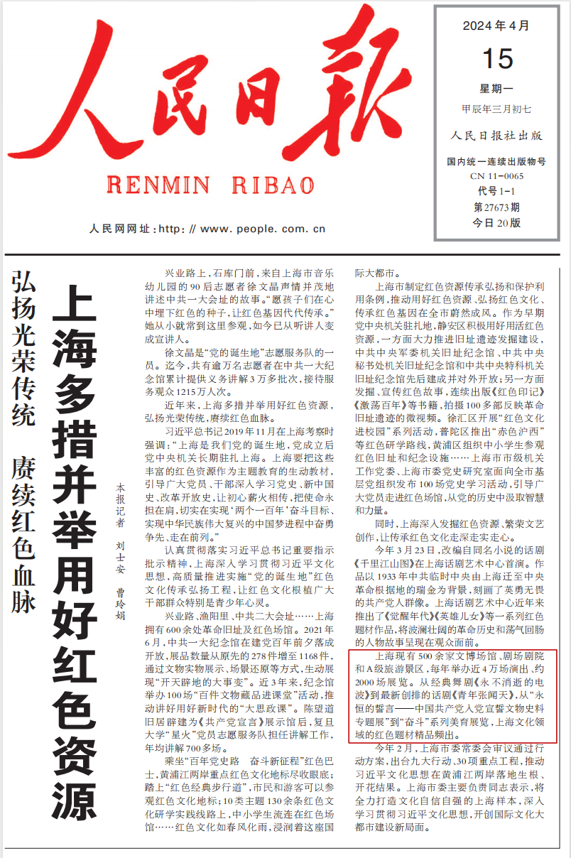 《青年张闻天》努力彰显上海的红色血脉与力量之源,被选作上海用好红色资源、繁荣文艺创作的案例登上4月15日《人民日报》头版头条。《青年报》也对本剧进行报道,形成了一定的辐射效应,成为剧组继续前进的动力。