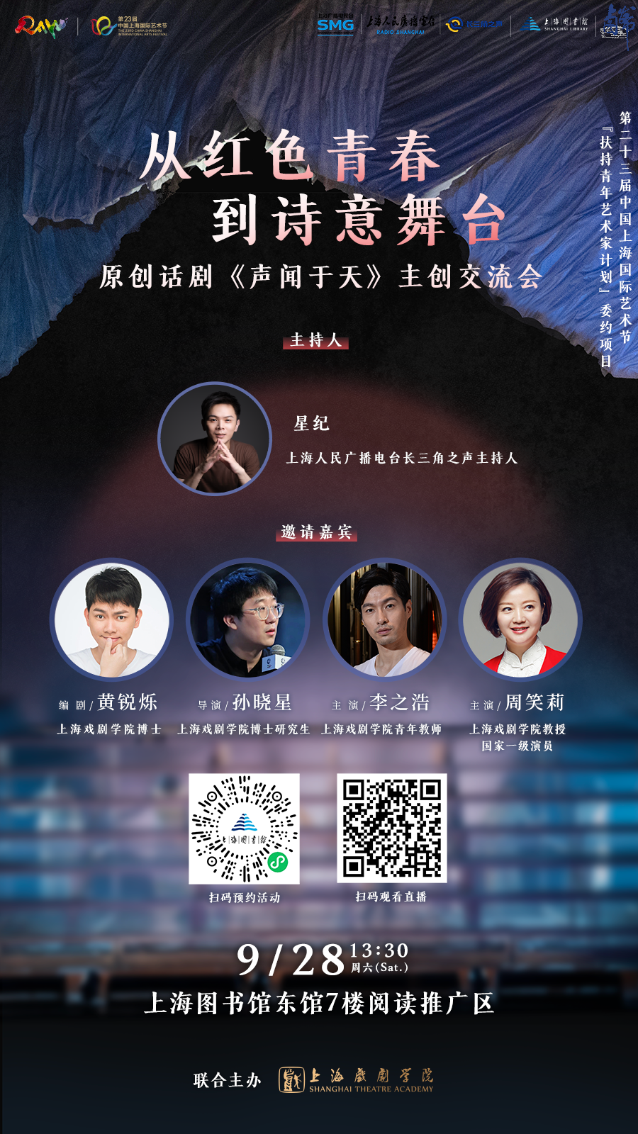 剧组一边提升艺术水准,一边加大宣传推广力度。9月28日,《声闻于天》编剧黄锐烁、导演孙晓星、主演李之浩、主演周笑莉受上海图书馆之邀,赴东馆召开主创交流会,与上海人民广播电台长三角之声主持人星纪展开对谈。