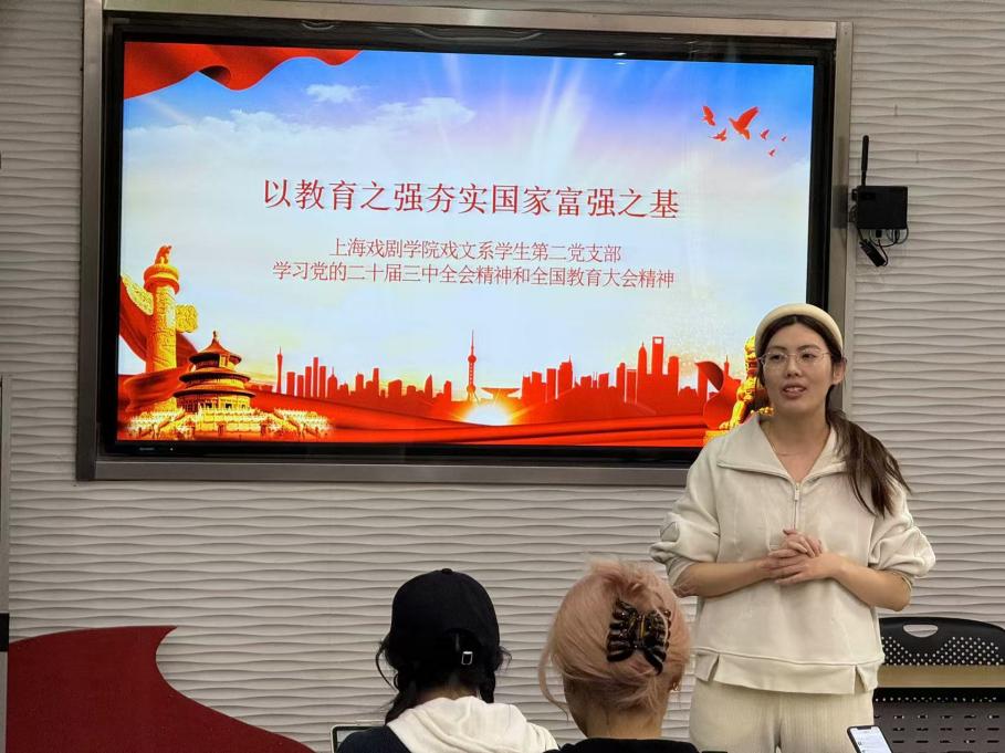 20241030日,上海戏剧学院戏文系学生第二党支部以“以教育之强夯实国家富强之基”为主题,组织开展了学习党的二十届三中全会精神和全国教育大会精神的主题党日活动,并顺利开展了支部换届选举大会。