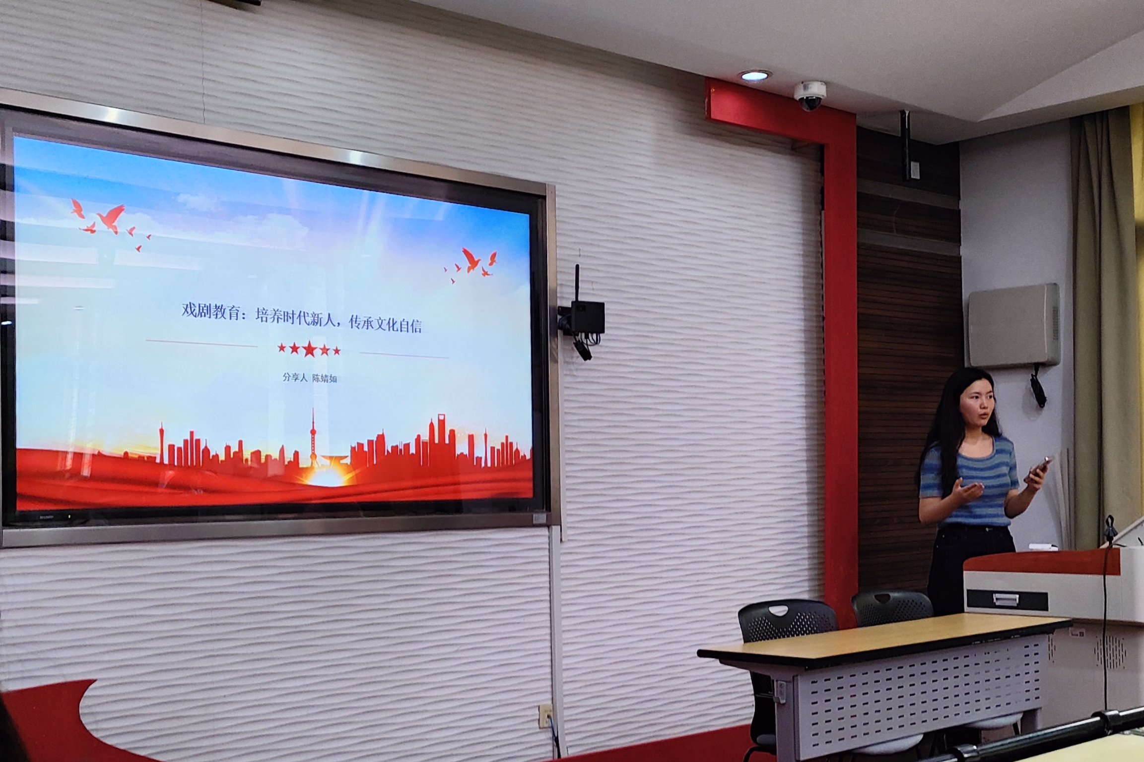 随后以“戏剧育人,知行并进”为主题,本支部的硕博研究生党员根据重点学习内容,围绕自己的学习、工作经验进行交流分享。2023级人类表演学博士研究生曲晓蒙以“开拓创新、实干笃行”为题,分享了自己做乡村教育的经验,结合在重庆、云南等地区开展“戏剧花开”中小学戏剧教育普及戏剧花开的实践,分享以戏剧促进乡村县域美育的目标与成果;2023级社会表演学硕士生陈婧如以“培养时代新人,传承文化自信”为题,讲述了自己在参与巫溪艺术考察戏剧教育实践中的所见所感,她深切感受到开展戏剧课程给当地孩子们带来的变化,并希望在社会实践中进一步提升教育的普惠性,提升自己的社会服务能力;2022级社会表演学硕士生夏义同学以“大众化戏剧的AI协同发展探索”为题,分享了自己所做的AI戏剧项目,通过将AI融入中小学戏剧课堂,开展AI戏剧故事课的实验,探索推动人机协同的可能性与价值。通过学习和分享,本支部党员结合自身学习目标,进一步明确了责任使命,坚定了为我国教育事业发展助力的决心。
