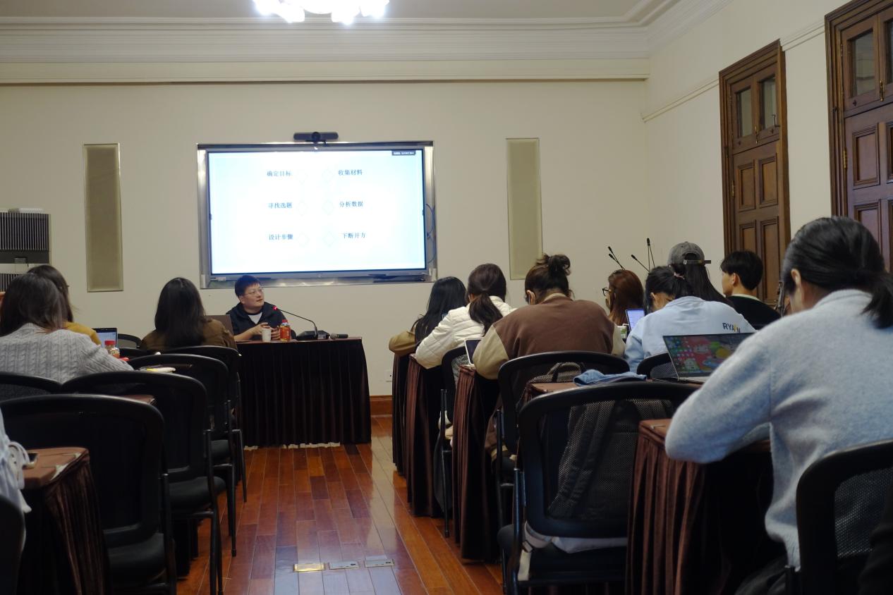 2024年11月6日下午,由上海戏剧学院戏剧文学系党总支主办“社会调查报告的选题与撰写”讲座于佛西楼二楼西会议室举行。本次讲座为“戏文系秋季就业创业服务季”的重磅活动,有幸邀请到黄静枫教授主讲,由戏文系党总支副书记、系副主任陈莹老师主持。黄静枫教授指导的项目曾荣获2023年第十八届“挑战杯”上海市大学生课外学术科技作品二等奖,他的科研水平成果累累,多次主持国家级基金项目,具有丰富的实践与理论知识储备。