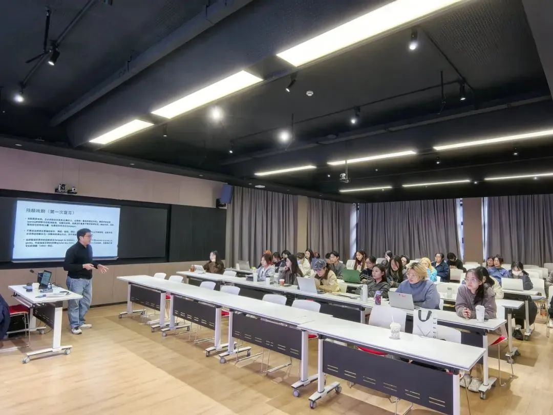 李老师进一步从阿尔托生平中最重要的著作《剧场及其复象》中撷取了诸多精华片段,带领大家进行文本精读,注重原文与翻译间的对照,让大量阿尔托原本晦暗不清的用语变得明晰易懂,使同学们在理解上最大程度地贴近作者试图传递的原意。李老师还结合自身丰富的剧场工作经验,为同学们举出大量戏剧实践中鲜活的案例,使“戏酷戏剧”这一耳熟能详的戏剧理论词汇不再仅仅是流于文本的简单概念。此外,李老师还带领大家观赏了几位当代知名导演的代表作品,令同学们感受到阿尔托的伟大戏剧理论时至今日仍然闪耀着光辉。讲座最后,李老师耐心解答了多位同学在阅读原著时产生的疑惑。