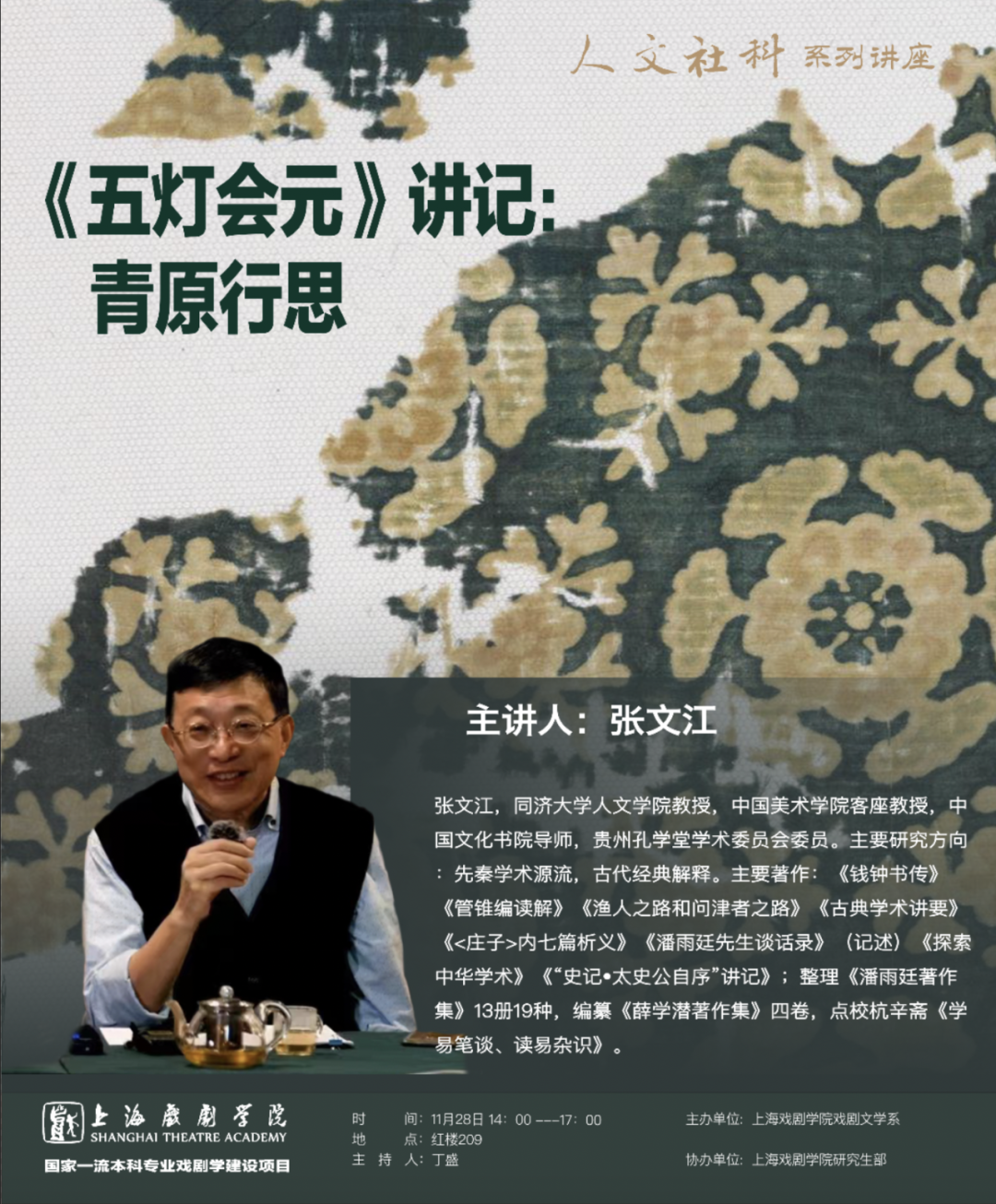 艺术与人文社会科学有着千丝万缕的联系,无论是创作还是研究都离不开人文社会科学的滋养。为了帮助本科生和研究生拓展学术视野与研究思路,在研究生部的支持下,戏文系推出“人文社科”系列讲座,邀请哲学、古典学、宗教学、心理学、文化研究等领域的专家学者来解读瓦格纳、荷马、《五灯会元》,探讨人何以是表演的动物、如何从心理学视角来看艺术以及《红楼梦》的媒介化等问题……