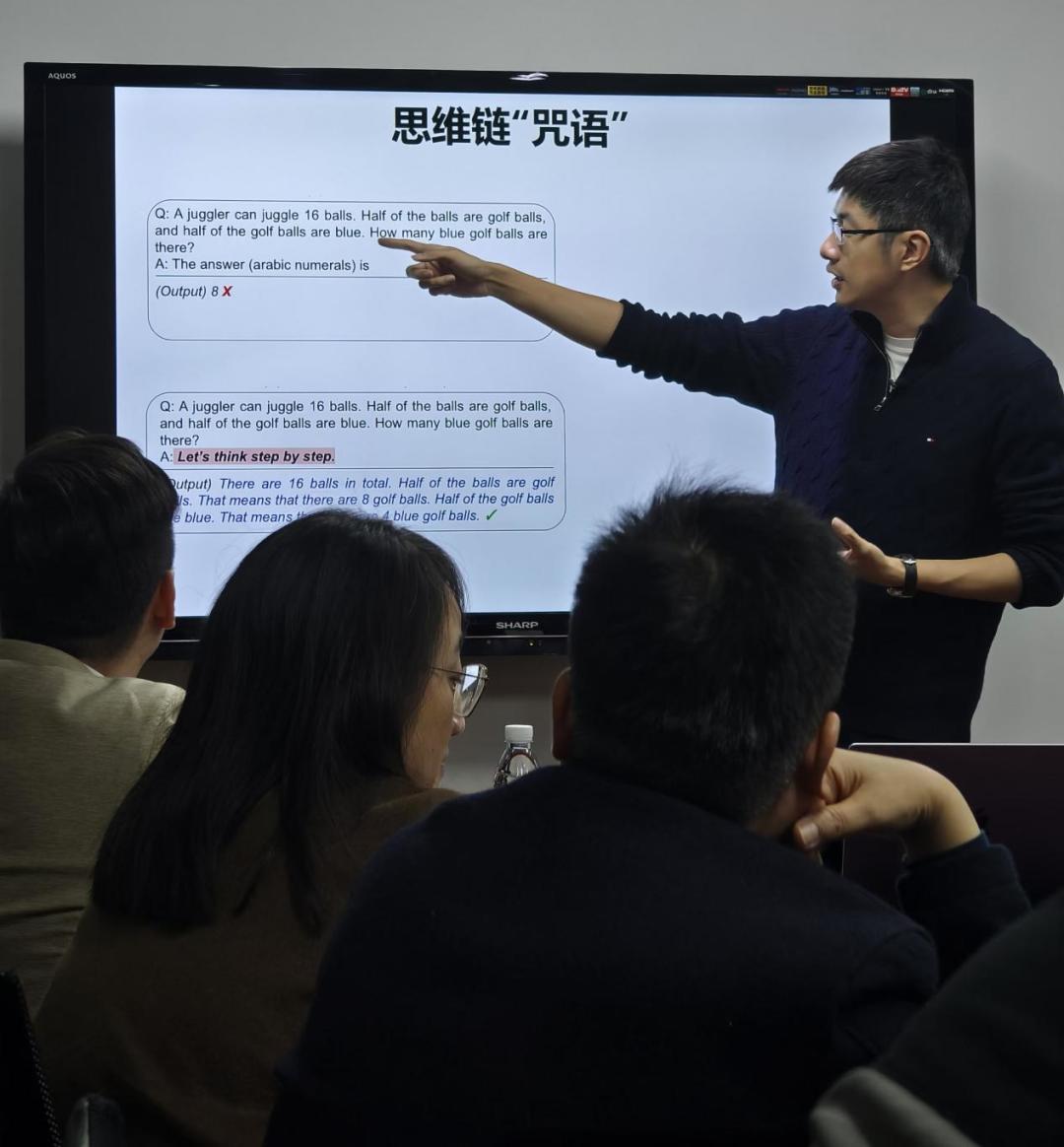 接下来,杨洋教授深入介绍了如何从实践层面运用大语言模型:其适配核心在于通过提示工程(Prompt Engineering)优化输入内容,从而引导模型生成符合预期的结果。思维链(Chain-of-Thought,COT)也是一种关键的推理策略,适用于复杂决策和多步骤任务。通过在提示中显式加入推理过程的逐步描述,模型能够基于上下文逐步生成逻辑清晰、准确的答案。这种“逐步推理”能够显著改善模型在逻辑分析等领域的性能。