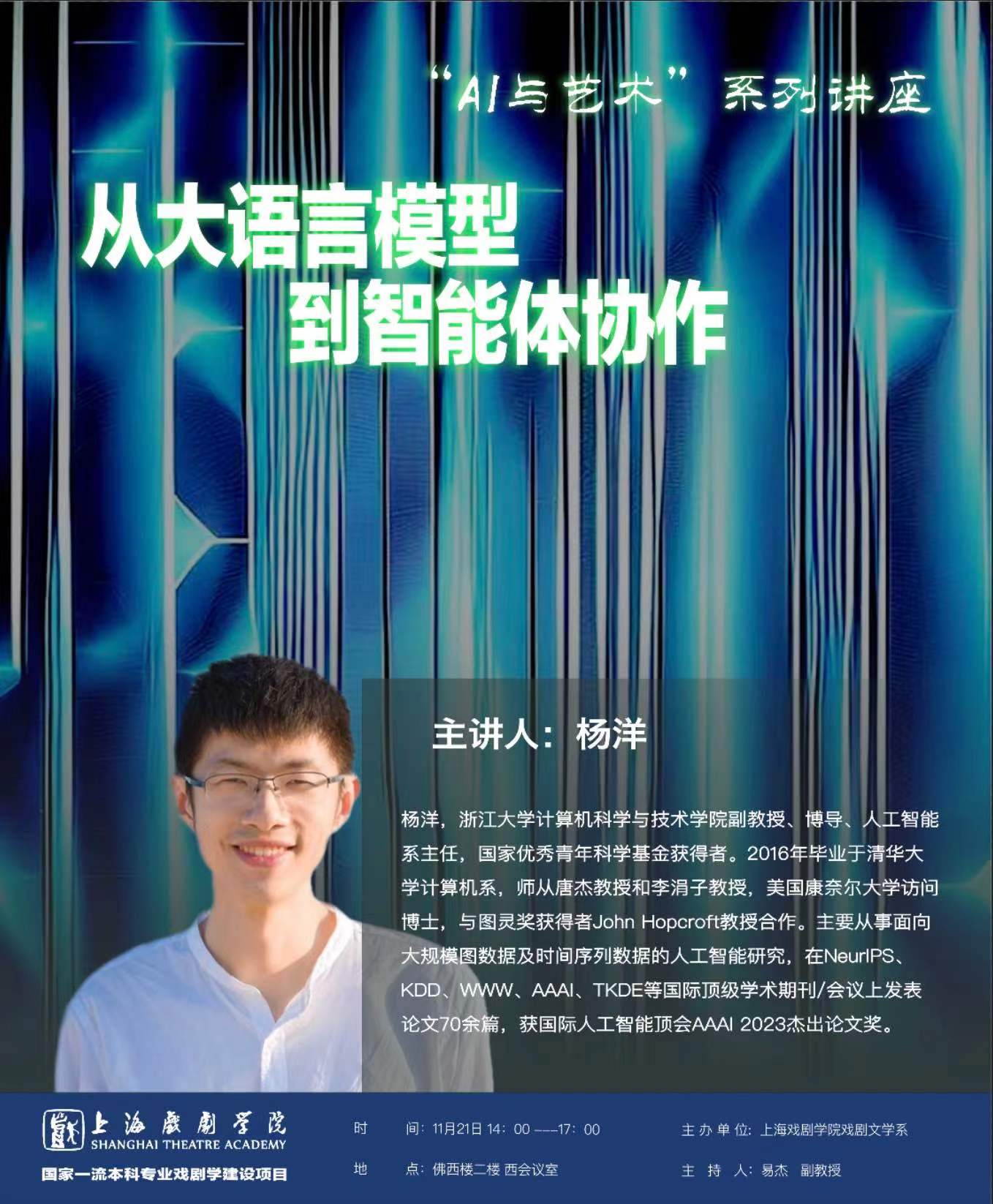 本次讲座聚焦于大语言模型与智能体协作的发展脉络及最新成果,为戏剧影视领域与AI的结合提供了新的思路和技术支持。