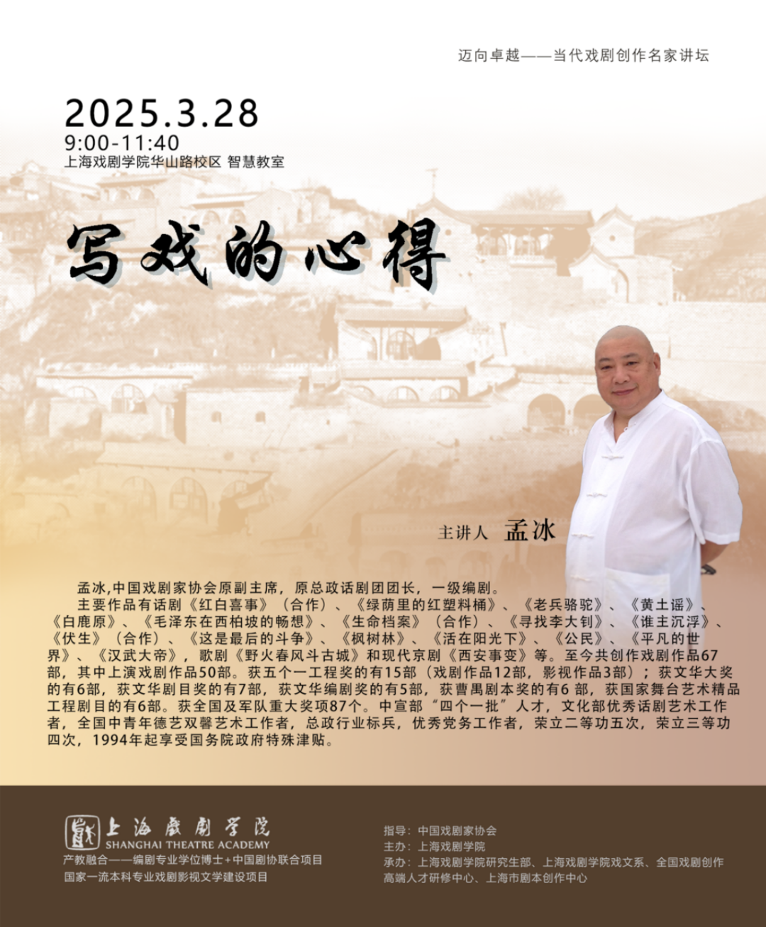 两个小时的讲述,孟冰先生以四十年创作积淀,为当代戏剧人点亮一盏明灯——戏剧不仅是技巧的博弈,更是生命的修行。无怨无悔,方能在困境中破茧;如痴如醉,终将让舞台照见灵魂的光辉。戏剧永恒,创作不息。