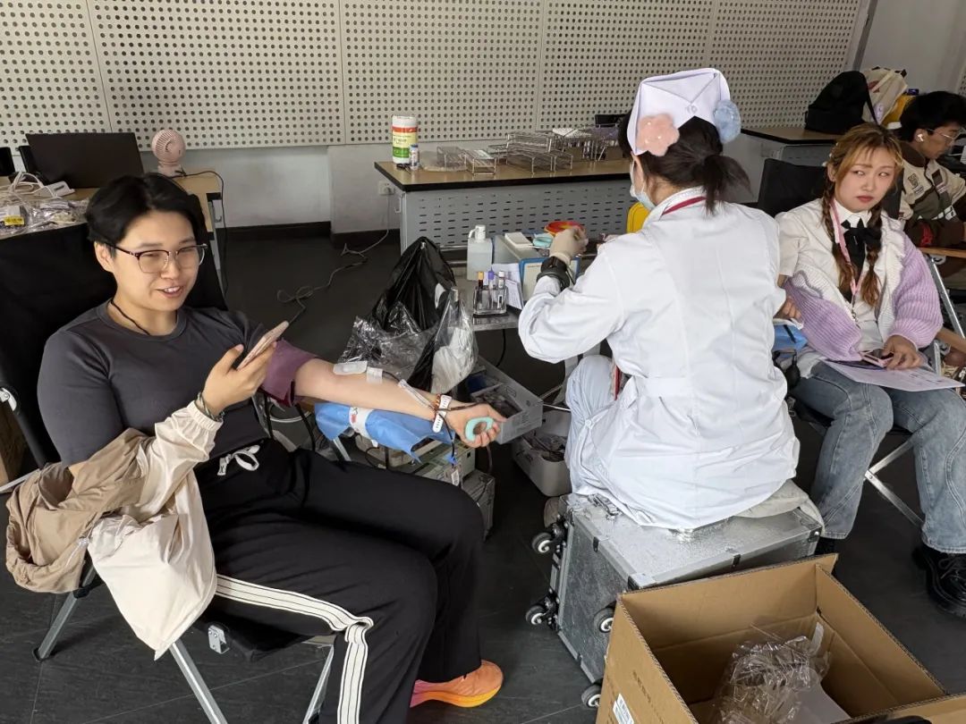 献血现场,医护人员与志愿者们始终密切关注献血人员的状态,并及时提供关心和帮助,保障献血师生的安全。参与献血的师生有序参与,积极配合,留观区的同学们互相关照,互相打气。