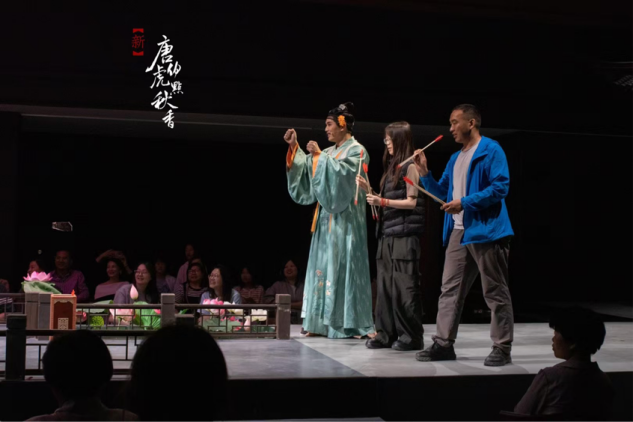 实践教学的第二环节是演出观摩。小分队来到拥有百年历史的苏州开明大戏院,欣赏了创新力作——沉浸式吴歌音乐剧《新唐伯虎点秋香》。该剧巧妙改编自经典弹词《三笑》,以文旅观众为主要受众,在音乐设计上选取国家级非遗“吴歌”为基底,同时创新性地融入沉浸式戏剧和环境音乐剧的现代表演形式,呈现了一次经典IP的当代艺术重构。尽管面临戏曲念白和吴语方言的理解挑战,同学们依然全情投入观演过程,不仅关注舞台表演,还有意识地观察分析观众构成及其反应,并积极参与多个互动环节。这次观摩让同学们直观了解了苏州地区以传统文化传播为定位的文旅戏剧创作现状,并引发他们对如何更好地将传统文化与当代年轻受众审美需求相结合的深入思考。
