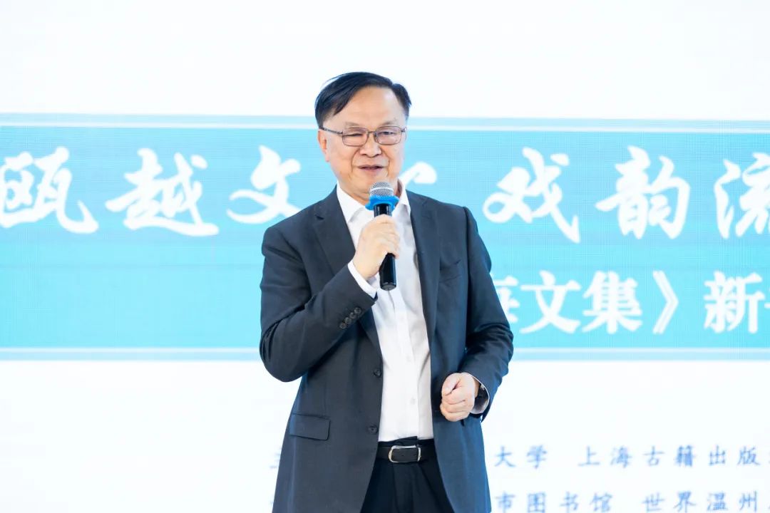 温州市委宣传部副部长曾伟首先致辞,高度评价了叶长海教授的学术成就及其对温州文化建设的卓越贡献,称《叶长海文集》是“携海派学术荣归故里,为南戏文化自信注入学术灵魂,以学术星光点亮故乡”。
